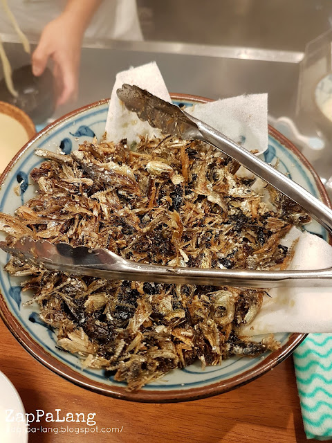 店家除了免费提供那些炸天妇罗的渣渣给你配面吃,还有一碗碗炸小鱼,那味道有点像不咸的Ikan Bilis,而且炸得非常非常酥脆,吃下吃下感觉还蛮不错的。