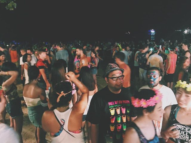 光是选酒店就用了好几天时间在 Booking.com 和 Agoda.com 找。 酒店价钱都翻倍,就连普通的背包客栈也不列外。当中也要考虑到价格、交通问题和隔天 Tour Package 的出发地点,住 Koh Samui 每个小时都有回岛的船,只是当心宿醉坐船会不会很痛苦。尚若想要住得比较舒适,Koh Phangan 酒店付的价格,可以在 Koh Samui 找到整间豪华名宿。咱们考虑的另一个因素是 Tour Package,从 Koh Samui 出发的 tour 除了洋鬼子之外有的是更多中国游客。最后我们决定留宿在 Koh Phangan, 派对完毕走路回家就可以直接睡觉。 我们入住的是 Fifth Element,地点不好找。我们扛着背包一边向当地人询问酒店的去向,每个人告诉我们的方向都不一样。天啊!让我们白白走了很多冤枉路。最后遇到了一位游客也是住在 Fifth Element,谢谢他为我们带路,不然月亮下山我们都找不到。原来我的酒店在山上,得走一段斜坡才能抵达。意外的是晚间没有路灯,我们隐约看见萤火虫的灯光闪呀闪。 咱们的酒店像似高脚屋,晚上还能听见昆虫的叫声。早上睡醒打开门充满大自然阳光气息,游泳池向着大海和哈林海滩,这风景让人心情多好! Tour Package: 建议大家满月派对前一晚抵达,这样就能够先了解 Tour Package 然后预先订购位子。我们抵达的当天是满月派对,问旅行社关于配套的资讯,大部分出海的都满额没有位子了。我们就打算隔天一早起来再做决定。醒来都已经太阳晒屁股了,哪里还赶得及出海。旅行社就叫我们购买隔天的配套。(可是人家一早就飞回马来西亚了) 不过大家不必灰心,我们选了一个 Asia Blue Sea Safari Tour 的出海配套,简单来说就是 Sunset Cruise。从下午两点左右出发,睡迟了也不怕。重点是这个配套只需950 Baht,在船上自由活动,包晚餐,浮浅,钓鱼,看夕阳,跳水和玩水上滑梯。 注意事项: 1. 身上不要携带太多的现金和贵重物品,容易在混乱中丢失 2. 建议穿着凉鞋到沙滩上,以免被酒瓶割伤 我们第一天抵达 Haad Rin 镇上,大部分的街道遭封锁不允许车辆进入,司机放我们在街上让我们自己步行寻找酒店。凡是进入海边地区,入门票100泰铢,门票就是一条写着 “Full Moon Party 2017” 的塑料手环。 每个月在哈林海边举办一次满月派对是帕岸岛这里的特色。除了一个月一次的 Full Moon Party,这里也有 Half Moon Party 和 Forest Party,每个 party 都毫不逊色。帕岸岛这派对之地吸引了不少世界各地的电音迷,大家不约而同的聚集在哈林海滩,裸着脚陶醉在音乐中尽情跳舞。 街上可见彩绘的摊位,帮你在身上画各种涂鸦。价钱我不清楚,我只知道图案越复杂越大,收费就越高。 温馨小提示:晚上大约9点才动手画噢,不然流了一身汗,图案就糊掉了。 我们用餐的地方提供顾客免费的颜料,不用花钱买颜料又能自己涂鸦。街上四处也有售卖荧光的头饰和配件,我们也来凑个热闹各自买了一条荧光头饰点缀一下。 男友的手臂上画了一只荧光粉红猪。 派对怎么能够少了酒精呢?街上的摊子售卖 Bucket Liquor 桶装混合式鸡尾酒,价钱按照酒精搭配的种类来计算,150至300泰铢就能买到一桶。我们就这样提着一个桶在海边流荡。除了Bucket Liquor,也可以在7-11 买到罐装的当地啤酒。 海滩上汹涌的人潮里,甚少看见亚洲人或中国人的脸孔。每个月的满月派对都有超过2万名背包客,住宿价格会翻涨几倍,酒店也会爆满。有意思要去帕岸岛上趴地的你,建议预先订好酒店。 尚若你可以High到隔天早上,那么你干脆连当晚的住宿费也省了,随便找地方落脚。(我还是觉得有酒店/名宿比较能够睡得香) |