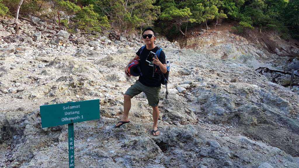 岛上的迷你火山,据说好几年爆发过,岛上好几个地方都有出现冒烟和气。 |