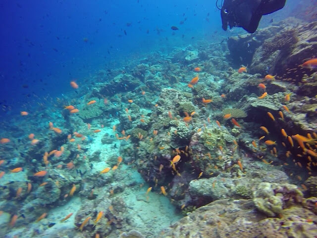 最惊喜的时候,就是一条大约一米长的Eel Fish 往我右侧游过来。吓死宝宝,过后DM说他们没有毒性的。 |