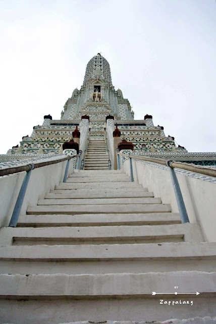 从门口就可以看到金碧辉煌的皇宫一角,这里的守卫森严,从大门外就有士兵驻守,每位进入的游客都需要经过金属探测器的检验,还有的就是皇宫是泰国最神圣的地方,凡是要进入这里的人们都需要穿上正式的服装,凡是穿拖鞋,短裤,暴露这类的衣服的游客们都不被允许进入,不想碰门钉和在皇宫附近花大钱买衣服的朋友要注意咯。 我们很乖,都有穿了长裤和有袖子的衣服来,不过人潮太多而花了不少时间排队,为了不影响接下来的行程所以我们只是在外头看看,拍照而已。 The Grand Palace Na Phra Lan Road, Old City (Rattanakosin) Opening Hours: Daily 08:30 - 15:30 Location: Price Range: 500 baht (One ticket includes entry to Vimanmek Palace and Abhisek Dusit Throne Hall) Gps: 13.753844, 100.491792 逛完了皇宫,下一站就是我向往已久的黎明寺 (Wat Arun)! 黎明寺又名郑王庙,是泰国最古老和标志性的庙宇之一。 黎明寺共有一个主塔加四个陪塔,主塔高82米,有泰国艾菲尔铁塔之称,主塔身由一层层,从窄到宽,色彩缤纷的塔墙组成,在我眼里这个结构有点偏像印度文化,在处处是佛庙的泰国这算是少见的。 由于此建筑历史悠久,之前在别的部落格看到外墙的颜色已经被风化到很严重了。恰巧我到访的时候已经经过了修饰,恢复了之前雪白的墙,还有五颜六色的花纹和装饰在墙上,拍照真的会好好看,虽然我不是在黎明或黄昏时刻来,不过还是觉得很漂亮。 通往塔顶的楼梯陡斜,楼梯的角度几乎是垂直的,梯阶非常地狭窄,上楼梯的时候还可以,下楼梯就是个难题了,老人家和小孩都需要旁助才可以顺利走下楼梯。 对我而言,我觉得黎明寺给我看到比较多历史,比较少商业的痕迹,没有金碧辉煌的高墙和摆设,多了“真实”的感觉,这次的泰国行看到的景色中最喜欢这里了。 Wat Arun 158 Thanon Wang Doem, Khwaeng Wat Arun, Khet Bangkok Yai, Krung Thep Maha Nakhon 10600, Thailand Phone: +66 2 891 2185 Gps: 13.743737, 100.488916 从黎明寺离开后,下一站也是我这次曼谷行的最后参观的庙宇- Wat Pho (卧佛寺)。曼谷的卧佛寺也是泰国最古老的庙宇之一,它的占地面积也是最广的,大概有8万平方米大,庙宇里头有几千尊佛像,还有存放泰国王族们的骨灰塔。 卧佛寺的位置就在黎明寺的隔壁,要说有什么特点的话那46米长,金光灿灿的卧佛像了。卧佛寺和黎明寺那种朴素,充满历史痕迹的风格完全不同,大部份的装潢如屋檐,墙壁,佛像等都带金色,感觉很辉煌豪华。 除了卧佛,我在这里最印象深刻的事就是看到各路的游客们在烦恼着如何拍才可以把全尊的卧佛像拍出来,躺在地上拍的有,蹲在奇怪地方拍的也有,其实答案很简单,在庙宇外的窗口拍就可以把巨大的卧佛像拍下来了 不过这只能拍到侧面,要拍正面的话还是有一定的难度,我看到眼前的游客群就立马决定放弃拍正面,呵呵~结束了这次泰国的庙宇行,我的感想就是泰国的朋友真的都很认真对待宗教的礼仪,到处都看到不要滥用佛像,如何尊重宗教等的海报和讯息,前来参观的朋友们一定要当个文明的游客,尊重别人的文化,要不然被拒绝进入参观的话就杯具了。。。 Wat Pho 2 Sanamchai Road Grand Palace Subdistrict Pranakorn District BANGKOK 10200, Thailand Phone: +66 2 225 9595 Gps: 13.746574, 100.493288 逛完庙宇,差不多是晚餐的时刻了,我们再次乘搭船只,来到了这次泰国行的最后一站,也就是很受游客们欢迎的曼谷河滨夜市 (Asiatique The Riverfront)。 从远处就可以看到的摩天轮是这里的标志,这里原本是一个商业码头,转变为露天的商场加夜市后共容纳了几千个大大小小的购物和食品摊位,只是逛街都会走到脚疼。 因为肚子饿,我们先不逛,而是找了家看起来还不错的泰国煮炒摊位点晚餐,