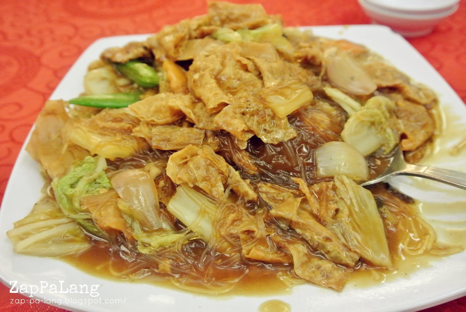 它看起来有点像我们平时吃的罗汉斋,不过味道没有那么浓郁,这也是我第一次吃到炒菜里头有鱿鱼,味道ok。