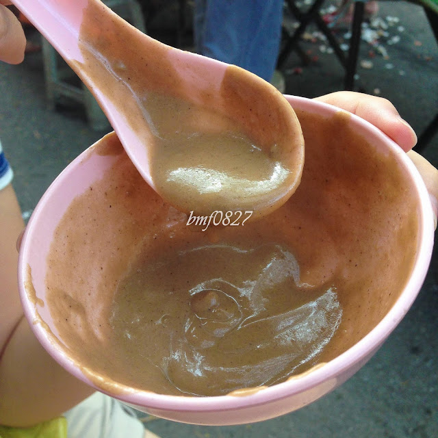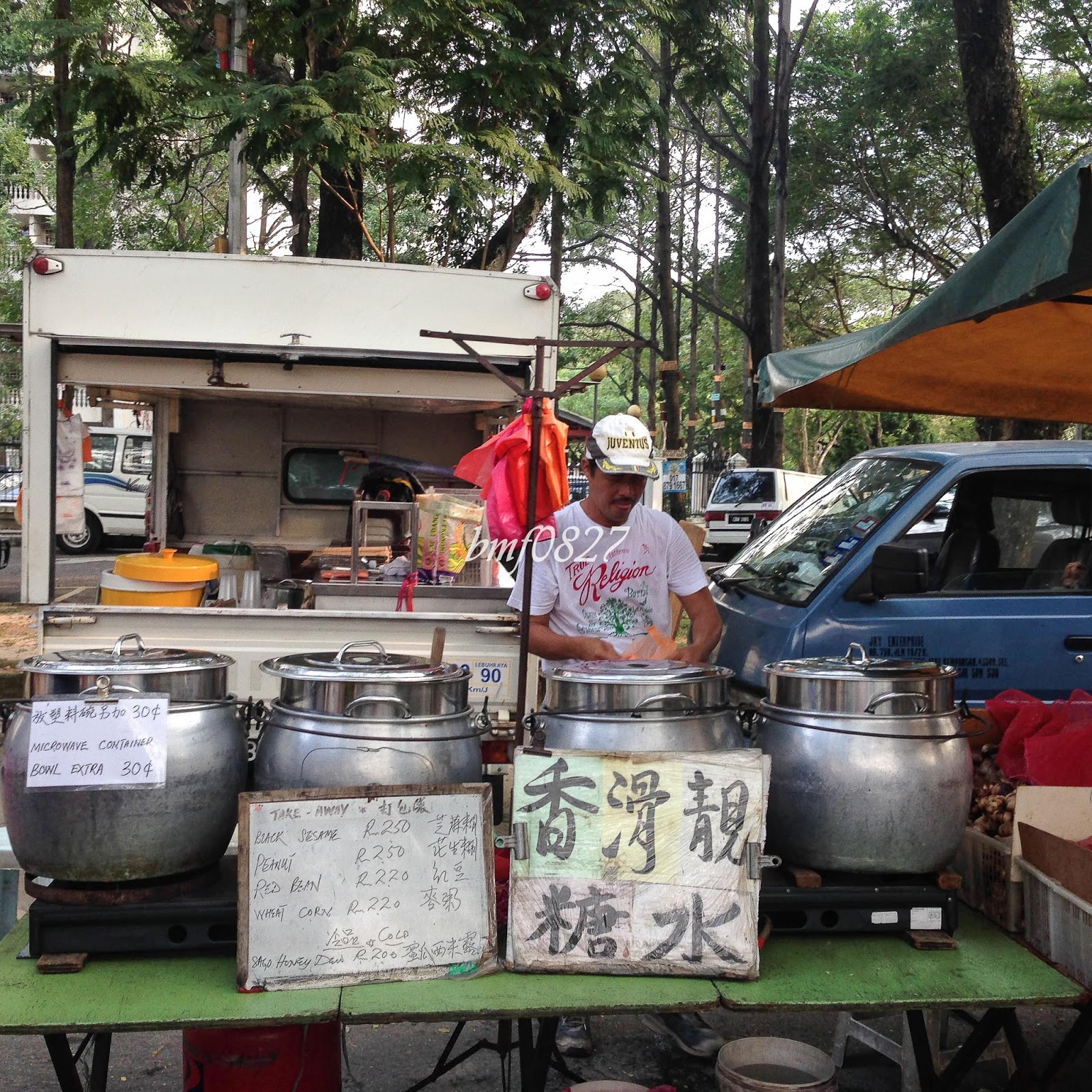 之后,一直寻觅,都找不到合心水的糖水。在一个皇天不负苦心人的傍晚,我们终于找到了。 这个位于 Sri Petaling 夜市(星期五)的糖水,每天都在不同的夜市摆档。欧巴点了一碗花生糊来试,感觉上还蛮滑的。放进嘴里,那个花生糊的感觉不只是普通的花生糊,而是散发着不同层次的味道,实在令人满足。欧巴和我就这样吃了一碗,而且因为天气和糖水热度的关系,所以我们都流汗了。(吃得太紧张,到最后才记得拍照 >.<) 吃完了花生糊之后,我们又随即点了一碗黑芝麻糊。这碗感觉也很不错,黑芝麻的味道很浓郁。老板之后才告诉我们,他是依古法炮制,而且持续保温,可以让食客能享受到热腾腾的糖水。此外,这些糖水也有养生功效哦。 像欧巴一样喜欢甜食的朋友们不妨可以星期五到 Sri Petaling 的夜市去尝尝! Sri Petaling 星期五夜市 Jalan 2/149b,