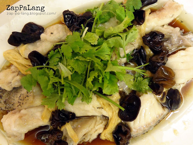 看到熊猫耳这名字有点吓到,原来是因为白色的龙趸肉上面放一片黑木耳,黑白相间的颜色看起来就像熊猫的耳朵那样,只不过当天的摆盘没那么讲究,所以看不出来所谓的熊猫耳。 龙趸的肉新鲜结实,简单的清蒸就可以带出鱼鲜味。