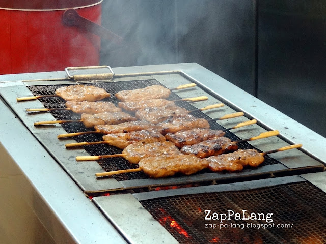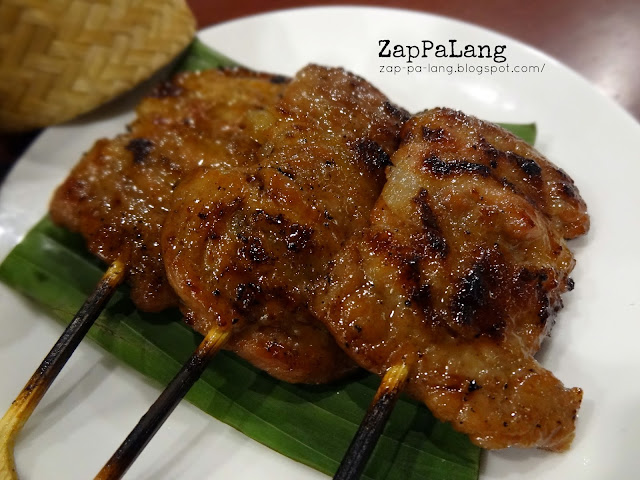 Moo ping 是猪肉串烧的意思,我在厨房看到员工们用炭火来烧烤肉串,制作的时间有点久,但绝对值得! 肉串用的是花肉,大约是七分瘦三分肥,肉质软嫩多汁,而且很入味,比起我们的沙爹更好吃哦!
