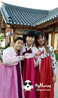 被赶出来了后我们就去附近走走咯,在漫画博物馆附近有好美的韩国传统建筑物,迫不及待的走了进去,看见有人在品茶,穿韩服。我们就去问问当地人,才发现原来这里试穿韩服是免费的。