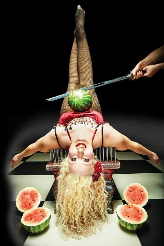 快来看看这些让人大跌眼镜的记录吧。 1.)躺在钉床上用在肚子切西瓜。2013年10月12日,在唐卡斯特,丹妮拉德维尔躺在钉床上,让人在她肚子上切了10个西瓜。 2.)最宽的舌头的纪录。来自美国的拜伦施伦克尔的舌头的宽度为8.3厘米。2013年10月30日,他在美国纽约新哈特福德进行了三次测量,结果为8.2厘米、8.4厘米和8.3厘米,最后取平均值为纪录数值。 3.)保持咬花姿势时间最长的挑战,表演者用嘴咬住一根短棒支撑起整个身体的重量。2013年7月17日,来自蒙古的Tsatsral Erdenebileg在土耳其伊斯坦布尔的Rekorlar Dünyas创下了保持咬花姿势4分17秒的纪录。