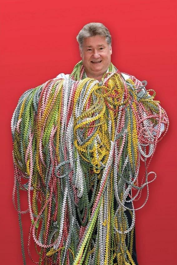 4.)钻箱子最快的男性,2013年6月27日,来自美国的约吉拉泽,又名肯内特格里纳韦耗时5.35秒钻进一个规格为50.8厘米×50.8厘米×44.4厘米的箱子。而钻箱子最快的女性为斯凯布罗贝格,在2011年9月15日,她用4.78秒钻入一个规格为52厘米×45厘米×45厘米的箱子。 5.)一分钟用肱二头肌挤碎最多苹果。2013年6月26日,在美国加利福尼亚州洛杉矶,美国的卢妈妈(原名林赛林德伯格)用肌肉的力量压碎了8个苹果。她曾是一名会计师,后辞职专门从事表演,现在可用肱二头肌把热水壶爆开,还可以把电话簿撕成两半。 6.)跳得最远的猫。2013年10月27日,飞猫阿利跳了1.82米,创下了纪录。阿利是美国人萨曼莎马丁豢养的一只救援猫,也是“聪明的杂技猫”巡回表演的一员。 7.)在最短的时间内用眼睛喷出牛奶并击中5个目标。来自美国的布兰登基花了34.9秒,刷新了吉尼斯世界纪录。 8.)一分钟内用链锯割掉嘴里最多苹果。2013年10月12日,在英国南约克郡唐卡斯特的“纹身贾姆”,来自英国的约翰尼斯特兰奇在一分钟内用链锯割掉8个放在嘴里的苹果。另外,他与搭档丹妮拉德维尔一起创下了一分钟内把嘴里的苹果一锯为二最多的纪录,共12个。 9.)世界上最长毛发的猫。喵上校的毛长22.87厘米,它于2014年1月30日去世。它主人是来自美国的安妮玛丽埃维。 10.)最大的钢琴。来自波兰的丹尼尔恰佩夫斯基制作了这架巨大的钢琴,其宽2.49米,长6.07米,高1.9米。2010年12月30日,在波兰申姆巴克小镇的一场音乐会中,有人弹奏了这架钢琴。但不幸的是这位天赋异禀的木工于2013年12月3日离开了人世。 11.)耳洞提起的最大重量。2013年10月12日,在英国南约克郡的唐卡斯特,来自英国的约翰尼斯特兰奇用穿在耳洞上的钩子提起了重达14.9千克的桶。 12.)收藏最多假食品食物的塑料仿品。2014年1月24日,来自日本千叶县山武郡的小幡亚希子收藏了8083件假菜肴,外加与食物有关的钥匙圈、玩具和冰箱贴得到了认证。 13.)用口香糖包装纸拼接起最长环环相扣的链条。来自美国的加里杜施尔拼接起的链条长达23.9千米,约230个足球场的长度。 加里从1965年3月11日起开始连接口香糖包装纸,截止到2014年3月已用3,743,076个链扣连接了1,871,538张包装纸。 14.)剑在匕首上保持平衡旋转次数最多。2013年10月12日,在唐卡斯特的“纹身贾姆”,来自英国的专业马戏杂耍表演者丹妮拉德维尔,又名丹妮拉马丁在1分钟内使剑在匕首上保持平衡旋转了9次,创下了新纪录。 15.)最宽的嘴巴。安哥拉人弗朗西斯科.多明戈.华金有着最宽的嘴巴,2010年3月18日在意大利罗马测量为17厘米。 16.)最大的手风琴。这台受风琴有2.53米高、1.9米宽、0.85米厚的六角手风琴重200千克。来自意大利的贾恩卡洛弗兰兹奈拉于2001年完成了这一乐器,并称其为“巨型手风琴”。 图:贾恩卡洛与其女儿劳拉 17.)最短时间捏出小狗气球。来自美国的约翰卡西迪创下的纪录有:最短时间捏出小狗气球(6.5秒)、一分钟和一小时内捏出最多气球造型(分别是13个和747个)。 18.)最突出的眼球。2007年11月2日,在土耳其伊斯坦布尔,来自美国的金古德曼把眼睛从眼眶中鼓出了12毫米。他在一次头部被曲棍球面具砸到时发现了这一天赋,现在她能够随时把眼球鼓出来。 19.)一分钟内用头砸断最多根码尺。来自美国的迈克尔佩里克罗索于2013年6月在《吉尼斯世界纪录冲击波》节目上,一分钟内用头砸断37根根码尺。 20.)一分钟内解开身上动物捕捉器最多的人。2013年10月12日,在英国南约克郡的唐卡斯特赛马场,来自英国约翰尼斯特兰奇一分钟内解开了身上6个传统动物捕捉器。 21.)胡子提起的最大重量。2013年6月26日,在土耳其的伊斯坦布尔,来自立陶宛的安塔纳斯孔特利马斯用胡子提起了63.8千克的重量。自2000年创下提起55.7千克的纪录后,这已经是他连续10次保持这个项目的纪录。 22.)一分钟内用胳膊肘压碎最多椰子。2013年6月24日,在美国加利福尼亚州洛杉矶的吉尼斯世界纪录现场,来自美国的表演家及武术师杰弗里詹姆斯利波尔德一分钟内用胳膊肘压碎了21个椰子。 23.)在脸上夹上最多的衣夹。来自意大利的西尔维奥萨巴是目前收获颇丰的吉尼斯世界纪录申请者之一,他创在脸上夹上51个衣夹。另外两项纪录是:尝试用最多的火柴棒搭成一座塔(74根)和用筷子搭起最多的骰子(44个)的纪录保持者。 图:在脸上夹上最多的衣夹的世界纪录 24.)最多常用吸管一次性塞进嘴里。2009年8月6日,来自英国的西蒙埃尔默尔成功将400根常用吸管一次性塞进嘴里。根据吉尼斯世界纪录的要求,他保持了10秒钟。尽管最终比他自定的目标少了两根吸管,埃尔莫尔还是获得了该项世界纪录。 25.)在身上碎裂16块水泥砖所用的最快时间(女性)2013年10月12日,在英国南约克郡的唐卡斯特,来自英国的丹妮拉德维尔(又名丹妮拉马丁)在身上放置16块水泥砖被其同伴约翰尼斯特兰奇挥舞大锤在30.40秒内砸碎。每块砖的最小密度为650千克/立方米。 26.)最长的手指甲“公爵夫人”是来自美国的克丽丝沃尔顿其左手指甲长3.62米,右手指甲长3.68米,两手指甲总长度达到7.3米。2013年9月16日,克丽丝在英国伦敦测量了她弯曲的指甲。 27.)收集最多比萨饼盒。来自美国的斯科特威纳对比萨饼盒子有兴趣。2013年10月23日,这个比萨饼盒狂人已经积累了来自42个国家的595个比萨饼盒子。他甚至还为这一爱好写了一本书,名字就叫《比萨饼万岁:比萨饼盒