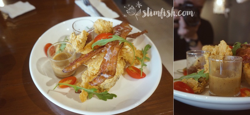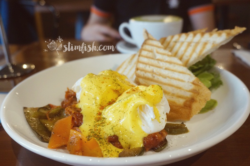 我们分享的Hot Matcha Latte,牛奶的分量太多了,多少盖了Matcha的味道,但还不错喝。 没有想到这份Chicken Waffle是这么呈现上来的,感觉早餐吃这个有点热气耶。分量很多,华夫饼没有给我们太大的惊喜,属于中规中矩。 而这道Pulled Pork Benedict就很特别。通常我们吃的Egg Benedict都是配着三文鱼吃的,而这个是配搭猪肉丝吃的!很好吃耶! 早餐后就到MBK商场走走,这里给我的感觉就像吉隆坡的金河一样,各式各类的商店都有。