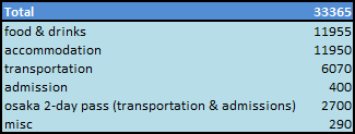 最后两天在大坂,我带他去couchsurfing,让他有首次体验,顺便可以有第一个reference。基本上我觉得这一次,我们花的钱还可以,不会太多,但他的食量很大,食物方面肯定花了不少。在大坂时,首两天我们住的那区有很便宜的超市,他买了很多便宜的东西回酒店煮,有一次还买了一条大鱼,但我个人觉得他煮的东西不太适合我的口味,所以宁愿买便当,方便快速,也不会吃到有恐惧感。 基本上,我想我蛮喜欢京都的;奈良也还好,在那里看了烧山节;大坂呢,比较是血拼的地方,没东西想买的话会比较沉闷,所以后来买了“两日旅游卷”,做了很多典型游客会做的事情,连什么动物园植物园都去了,真的是破了自己的记录! 好了,废话少说,跟大家分享一下在日本京奈坂12天的消费: 由于花费和行程是息息相关的,下一个要分享的当然是行程咯: D1 (18 Jan 2014) - 乘亚航从吉隆坡飞往关西机场(KIX),过关之后已经是2300了,所以在机场过一夜。在Lawson附近可以免费借到被子,但必须在隔天0600之前归还。 D2 (19 Jan 2014) - 0600之前起身并把被子归还,然后搭Haruka 火车到京都。今天去的地方包括Gion (祗园), Fushimi Inari (伏见稻荷神社), Kyoto City Hall (京都市役所) area, Kamo River (鸭川), Zest Underground Shopping Mall, Honnoji Temple (本能寺), Teramachi-dori Street (寺町通), Shinkyogoku-dori Street (新京极通), Shijo-ohashi Bridge (四条大桥)。 D3 (20 Jan 2014) - 走路天。Nishiki Market (锦市场), Walk to Kiyomizu-dera Temple (清水寺), walking course (Kiyomizuzaka > Sannen-zaka (产宁坂) > Ninenzaka (二年坂) > Yasaka Pagoda (八坂塔) > Higashioji-dori (东大路) > Yasaka Jinja Shrine (八坂神社) > Shijo-dori (四条通), Pontocho (先斗町)。 D4 (21 Jan 2014) - 搭巴士天,买了500 yen巴士券。到Kyoto University (京都大学) 吃早午餐, 然后是Toji Temple's mega temple market (东寺), Kyoto Station (京都站), Pontocho (先斗町)。 D5 (22 Jan 2014) - Kinkakuji (金阁寺), Arashiyama (岚山), Kyoto Station (京都站) D6 (23 Jan 2014) - 到银行处理一些事宜,和日籍朋友见面,就只在Sanjo-dori (三条通) & Shijo-dori (四条通)附近而已。 D7 (24 Jan 2014) - Chion-in Temple (知恩院), Heian Shrine (平安神社), Nijio (二条), Sanjo (三条), Shijo (四条), Hanamikoji Dori (花见小路). 从京都出发到奈良。 D8 (25 Jan 2014) - Naramachi & Nara Park. Grass Burning Festival(烧山节). 从奈良出发到大坂。 D9 (26 Jan 2014) - 在 Tennoji/Shinsekai/Minami 附近走走, 也去到 Dotonbori (道顿堀). D10 (27 Jan 2014) - 购买了 Osaka Unlimited 2-day pass. 去了 ShiTennoji Temple (四天王寺), Tsutenkaku Tower (通天阁), Tombori River Cruise, Osaka Castle (大坂城天守阁), Floating Garden Observatory (空中庭园展望台). D11 (28 Jan 2014) - 继续使用Osaka Unlimited 2-day pass. 去了Osaka Museum of Natural History (大坂市立自然史博物馆), Tennoji Zoo (天王寺动物园), Aqua-Liner (Osaka Suijyo Bus), HEP Five Ferris Wheel, Osaka Prefectural Gov Sakishima Building Observatory, Natural Open-air Hot Spring Spa Suminoe(不想花200 yen租借毛巾的话,记得自己带) D12 (29 Jan 2014) - 离开大坂往北海道去。 |