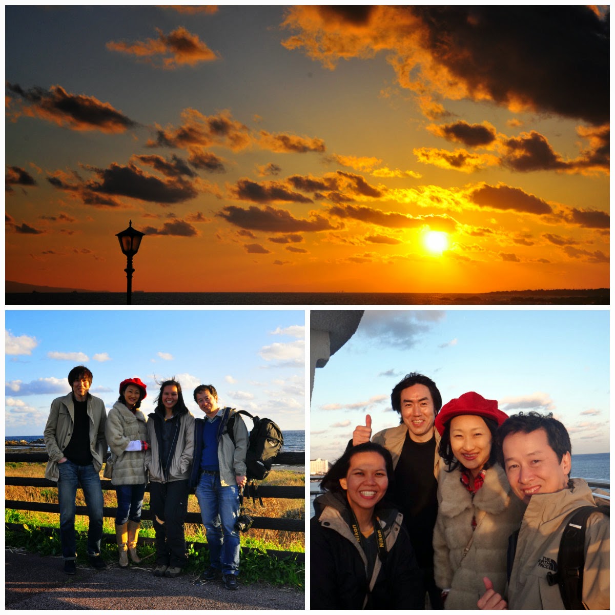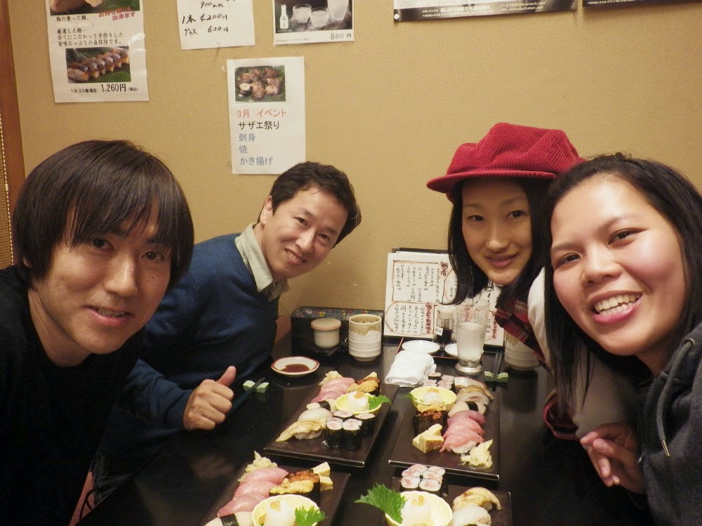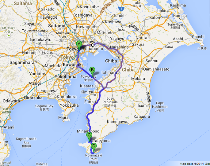 以前都是乘火车,这算是第一次真正经历在东京的塞车,好可怕。那也是他们long weekend(五六日都是公假)的第二天,或许这就是交通拥挤的原因吧。他们在车上都在喊饿,幸好我有准备了一些零食,可让他们不那么快就昏倒过去。 终于到了UmiHotaru,那里人超多,幸好也还找得到泊车位。 在他们很饿的情况下(我还好,因为有吃早餐),Kaori和Asato吃了好大碗的蔬菜champon;咖古和我则吃了很不错的鲭鱼饭。以前在夏威夷和咖古及玛莎鲁一起去吃过长崎champon,过后整晚都超口渴,灌了很多水,所以现在有一点怕了。 吃饱饱了,我们在UmiHotaru那里欣赏一下了360度被海包围的景色,顺便找找Tokyo Skytree和Tokyo Tower的踪迹,然后才离开。 从UmiHotaru到馆山,还需要大约一小时半的的路程。一路上的景色非常优美,可说是从喧嚣的东京都市进入到田园区,有山有水、绿意盎然,我个人是十分喜欢。有几次看到树上屋,整个构图很美,但为了闪避一些杂草围栏,等等等,最后的结果是:在车没机会停下的情况下,一张照片都拍不到。转过头去,看看睡女神Kaori是否在睡觉,却看到Asato睡着了。可怜,他昨天傍晚才从迪拜回到日本,应该还没适应回时差。 沿途看到不少油菜花,不过都是小型种植而已,所以也没太壮观。无论如何,还是喜欢黄色一片的花田,有充满希望的感觉。咖古说,那种花日文叫 nano-hana。 (左下) The Tower of Wind 老实说,如果不是我来,他们是不会这样相约一起出去玩的,至少在过去的一年以内都没有,所以我心里对他们有默默的感谢。以前在夏威夷,咖古、Asato和我时常都一起出去玩,然后就会在我家吃披萨喝啤酒当晚餐,为一天的出游划下完美的句点。至于Kaori,那时她自己有车,除了朋友多,她又学跳舞又学演戏之类的,是个大忙人,很少参我们。去年年初在日本完成学业的最后阶段时,我们一起租车到富士山下的几个湖泊,她午餐之后就不想动了。我们下车参观神社,她却说她要留在车上睡觉。要她精神很容易,去到100 yen的店她就会精神百倍、买很多东西了。 咖古说他把车卖掉了,现在参与共车计划(car sharing system)。我就问他,以这种改边,到底可以省下多少钱?他说,要“养”一部车,每个月的维修、汽油、停车位等等,花费大约是100,000 yen。参与共车之后,如果完全没用车,每月必须支付大约1,000 yen的会员费,但通常都会有些时候需要用到车。有用车的话,所有杂费加起来大概也只是10,000 yen。也就是说,目前花在车的钱,只是以往有车时的10%而已。共车计划的另一个好处,就是每次需要用车时,可以好像租车那样选看要用哪部车,而且租金每小时才800 yen,超便宜。 我问咖古他有没有馆山的朋友?他们家里是否有农场或田园之类的?他说有一个,但当他尝试要拨电话给那个朋友时,才发现自己没有她的电话号码。我们先在Tateyama Port那里走走看看,才知道,原来在他办公室附近的竹芝码头(Takeshiba Terminal),是有船直接去到馆山的。不过,知道也没有用,因为他是一个会晕船的人! 逛完了,他们兴致勃勃说要吃 soft cream,我听到一头雾水。后来才知道,那是指冰淇淋,好像 vanilla cone那种。没找到,但Kaori买了一些花生饼,她说那是千叶县的特产。她不说,我还真的不知道! 接下来,我们继续驱车往南部去,目的地是野岛埼灯台(Nojima Lighthouse)。老实说,我真的不想太去回忆在夏威夷的东西,所以之前我不选择去有“小夏威夷”之称的九十九里。只是没想到,这一段路,竟然和我初抵夏威夷时住宿主人就载我去逛的那一段(Oahu岛的东南部)超级像。当天的天气一级棒,沿路的美景在它的衬托下更加awesome,而且,一路驶去,右边是海,就算我想极力抑制以往的回忆重现,也真的很难。 美好的回忆,没什么不好。如果美好回忆参雑了一些应该甩开但却甩不开的情绪,那又是另外一回事了。 在夏威夷,和当天的馆山之旅很相似的路线。 到了野岛埼灯台,正是夕阳即将西下的时候。上灯塔必须买票(200 yen),而且当时已经超过可以进入的1630,但没想到工作人员竟然还通融让我们上去。从那里俯瞰,也是一个“美”字形容。或许是在北海道将近两个月,我已经比较能抵挡冷天气。当他们三人都说很冷、必须下塔回到车里时,我依然还在那里等夕阳,并且觉得不是太冷。 当天的夕阳景色是在太迷人!我又再一次那么幸运了! 这间小店人还蛮多的。我们等了将近一个小时才得到一个不错的座位。他们原本给我们四人一字排开那种座位,我说那样吃东西感觉很疏远,所以不要,继续等。他们五点才开门做生意,到了七点,已经有好些东西都卖完了(在我们点餐前,工作人员告诉我们的)。最后他们点了什么餐基本上我也不太清楚,但四个人吃的都是一样。 (左上)wasabi tako 芥末墨鱼(右上)不懂叫什么榻榻米 (下)好好吃的寿司,真的可以表情很夸张那样说 sugoi ne~ 吃饱饮足,是时候踏山归途了。我问咖古要走哪条路回,他说距离短的那个,也就是早上塞车塞到半死那一条,但在途中就看到说那里的交通依然很拥挤。导航也很聪明,直接帮我们避开塞车的那段路,必须走另外一条距离比较长的。 从东京到馆山之旅的路线 第一次在东京以驾车的方式出游,除了见识到这个先进大城市的拥挤交通,另一个就是超昂贵的过路费。这样出去一天,我们给的过路费就已经是大约 10,000 yen(约一百美金!!),吓死人!我原本以为走路经UmiHotaru(我们午餐的地方)的Tokyo Bay Aqua Line贵而已(过路