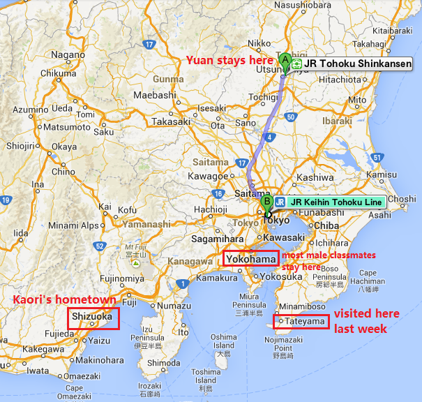 3月19号(星期三)和咖古晚餐时,他建议星期六(3月22号)来个小出游。我赞同,然后我们就问其他日籍同学,看还有谁要参与。很快地,就找到了Kaori和Asato。 至于要去哪里,他给了我几个选择,然后我负责上网看资料和决定。原本想要去伊豆半岛(Izu Peninsula/Hanto),但路途好像有点远,不想赶来赶去,所以最后还是决定在千叶县(Chiba Prefecture)就好了。在千叶县呢,有几个选择:九十九里(Kujyukuri)、木更津(Kisarazu)或馆山(Tateyama)。