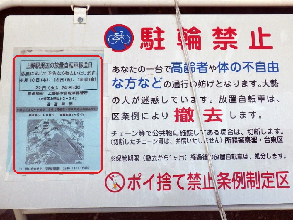 之前还在想,好不好把“骑脚车”放进“如何省省游日本”系列,但经过深思,大多数人在日本都是紧凑地游,有些还想一星期就走完京都、大坂、名古屋、东京(我真的超佩服,单单京都我就用了6天),他们的旅程应该是不断坐火车,甚至跑景点的时间还多过睡觉那种。哪还有时间那么有心情去骑脚车? 所以,我没把骑脚车放进去。但其实,骑脚车真的帮我省下不少钱。从日暮里去一次上野,搭火车的话,单程就要140円了。我去了好多好多次呢! 也要谢谢主人阿Jean有两辆脚车供租给客人(每天500円),也感谢客人都不租,所以Alex和我,一人一辆,他1号我2号,我们每天都可以免费骑脚车出去。在东京的首两个星期,大多数时候我都是在走路、看地图、认路,去到了上野(Ueno)、南千住(Minamisenju)等地区,后来,如果每次都要走半小时才可以到一个地方,太花时间了,所以开始骑脚踏车。第一次骑着它出发,是去浅草(Asakusa)那里。骑着时,真的觉得幸好不是走路去,不然真的得走好久好久,而那天的天气预报是说,大约黄昏那样会开始下雨。 之后,就一直都是骑脚车了,除非是很近的距离,才会步行。脚车,在日语被称为jidensha(じでんしゃ),汉字是“自転车”。 在东京这段时期,步行和骑脚车到过的范围就是这样,比较远的,都是乘火车。 Alex时常跟我分享说,他当天又骑去了哪里哪里。他和我的分别就是,他时常骑大路,去到Akihabara、Shibuya、Shinjuku这些名字说出来,人家都比较熟悉的地方。而我呢,大多数时候是骑小路,到那些对游客来说都没听过的。 我跟Alex说,我怕骑太远会迷路,不懂怎样回家。 他说,跟着路牌骑,很容易的,而且据他的经验,在日本骑脚车比在加拿大骑,安全很多。不只这样,还有一些“大电梯”,是特地为骑脚车的人而设,你可以推着脚车进去,一起搭电梯。 我住过、曾在那里慢慢骑脚车的地方,除了家乡适耕庄,应该只有澳洲Toowoomba、夏威夷和东京。 4月5号那天,我到上野公园那里Hanami,把脚车停在某处,那里也有很多其他的脚车。4月10号那天,从邮局出来,看到有人在脚车上贴上一些纸,我在想会不会是罚单?上面写的是日语,我不完全明白,但看看四周,原来真的有写“驻轮禁止”。 哎呀,那些地方是不合法的!我一直以为日本人应该是很奉公守法,所以看到人家停,我也就照停,没想太多。