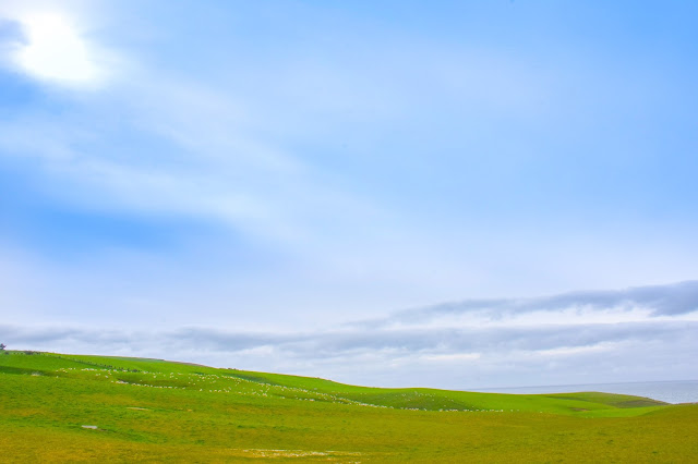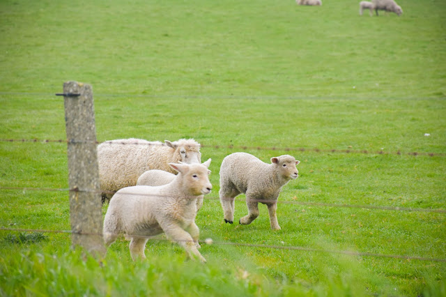 刚巧看到一群羊被放出来开饭。 他们必须经过一个小闸门才能到到另草原去, 刚巧我们在这个闸门停下来了。 绵羊是超级怕人的。 他们一看我们停车,他们就全部不敢动了。 虽然当时我们离开闸门最少有10尺以上的距离。 他们看了一看,之后就有几只绵羊加速的冲刺过去了。