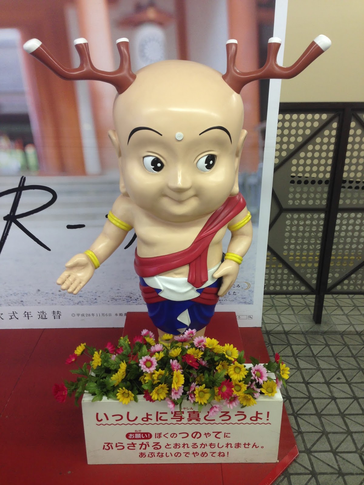 到了奈良站后就靠市区的循环巴士逛大部分的景点。奈良出名的就是鹿,到处都可以看到鹿有关的手信和饰物。就连哆啦A梦和进击的巨人都有限定版”鹿“的造型。在车站可以看到下面的鹿孩。 二月的奈良还蛮冷的感觉比大阪更冷。出了车站后就找1号巴士站搭2或6号的循环巴士到大佛殿春日大社前站下车。其实如果不要搭巴士要省钱用走的也可以,只是比较远而已。看到还蛮多人用走的。因为近铁一日卷已经包含巴士费,当然搭巴士咯。上车只需要出示近铁一日卷给司机看就可以了。 过了几个站后就到了,一下车就可以看到周围悠闲的鹿。第一站先到东大寺。在路口处有两间手信店,有卖蛮多手信。 这里的鹿是野生的还是要小心一些。尤其是如果你拿着包包还是纸袋类似有食物鹿就会靠近。这里有很多卖鹿饼的档口,可以喂鹿。但是建议到鹿比较少的地方喂比较好,而且要藏起来。