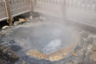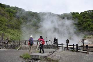 逗留了一会,我们就往里边的林子里去,顺着阶梯上上下下半个时辰后,一幅烟雨迷蒙的山水画就呈现眼前。只是此山的水非一般的山水,谁碰到谁就熟透透。听说这大汤沼是很久以前的爆裂火山口遗迹,远处背山的顶峰还能看见仍未止息的白烟,稍微靠近就能感受到水面上的热气逼人,可见地球里头的热度是何等的惊人。