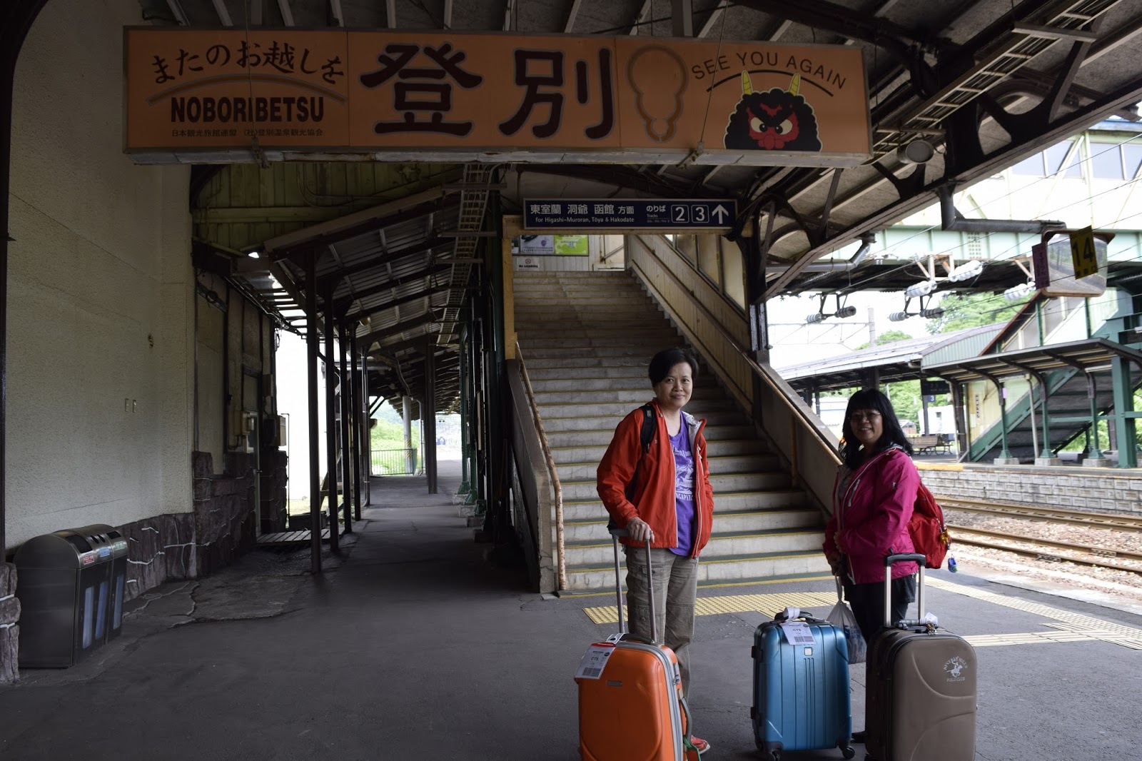 新千岁的列车没有往南部开跑,我们就乘搭往北部札幌,但在第一个停站下车,转搭从札幌直下南部的列车去登别..........。